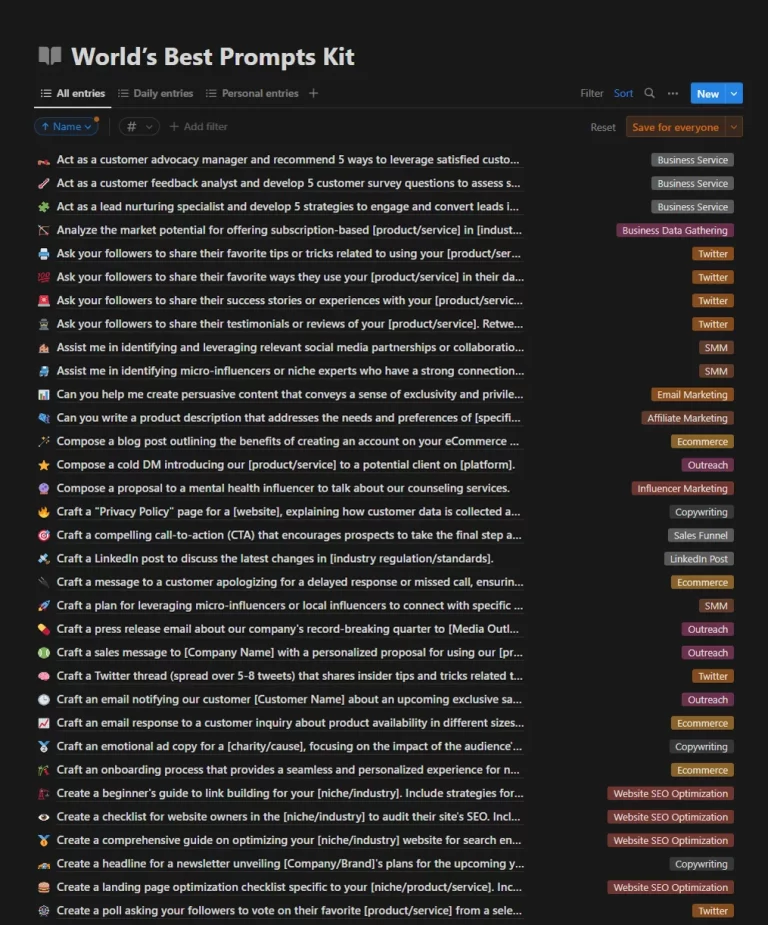 “World Best Prompts Kit to access AI” is perfect for a wide range of professionals and businesses, including digital marketers, copywriters, authors &bloggers, social media managers, ecommerce stores, agencies &freelancers, startups and so much more